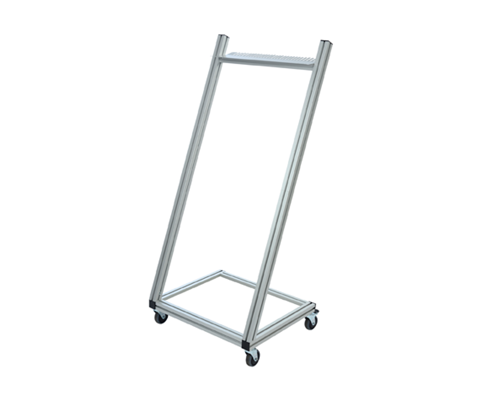 - base frame-/ base trolley composed of frame profiles, base plate (max. load capacity: 30 kg), antistatic tires (2 lockable) and: