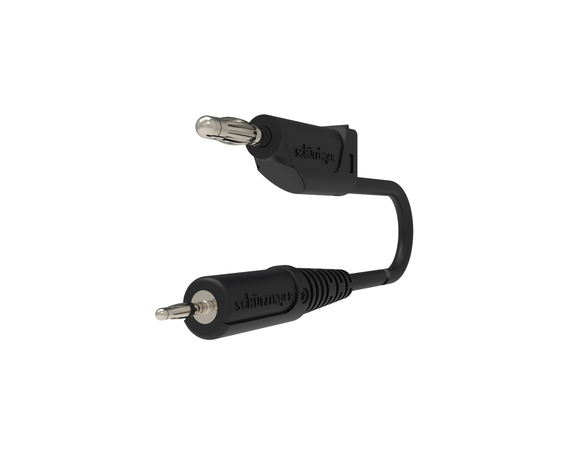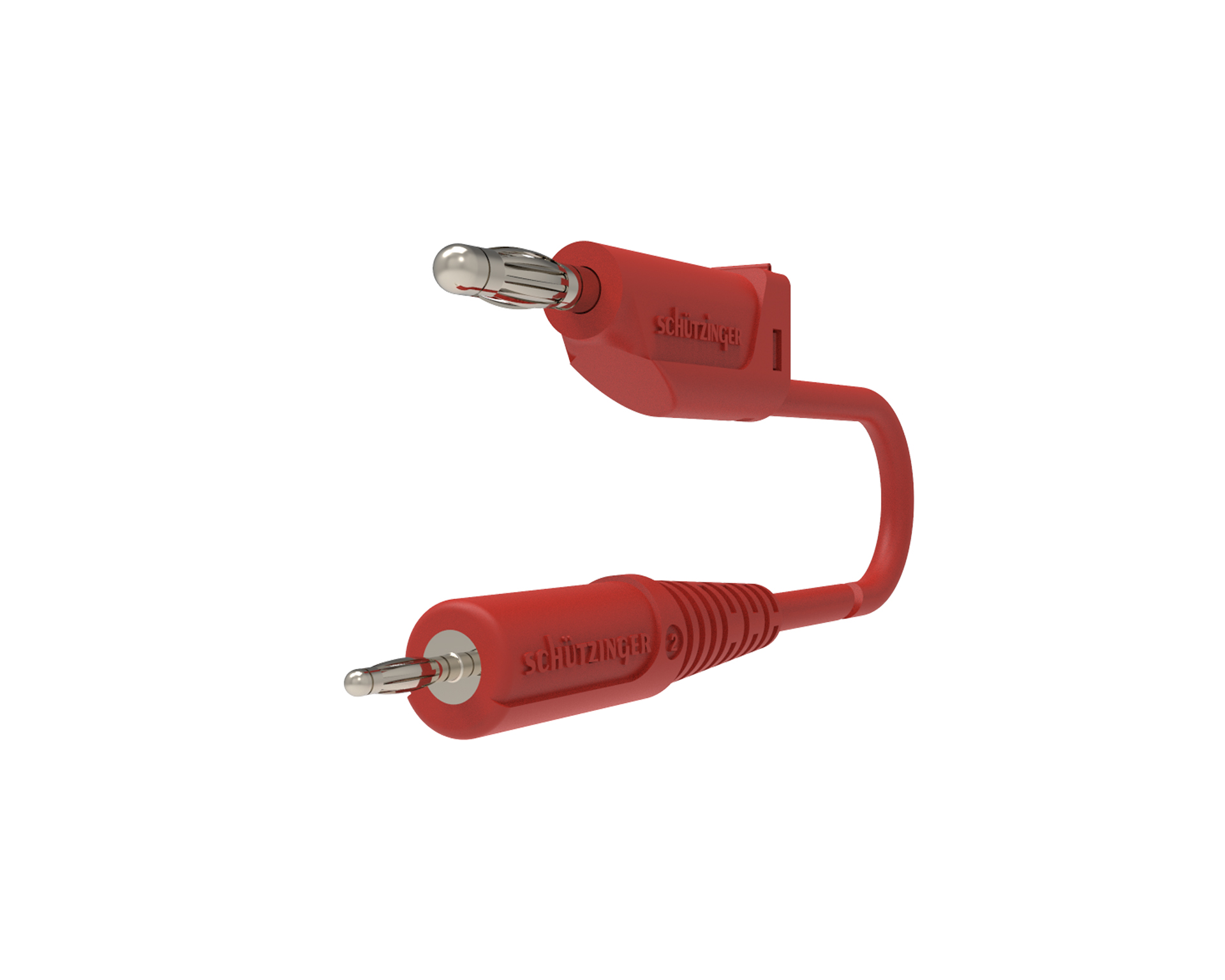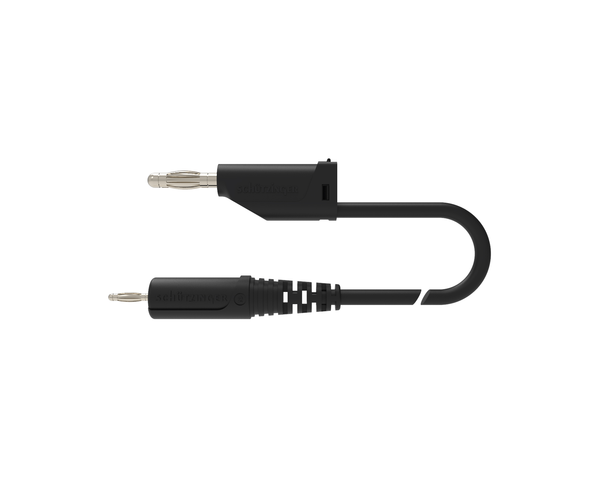 - 1 Federkorbstecker mit axialer Steckbuchse, Steckdurchmesser Ø 4 mm und 1 Federkorbstecker, Steckdurchmesser Ø 2 mm, konfektioniert an hochflexibler, doppelt-isolierter PVC-Leitung 1 mm²