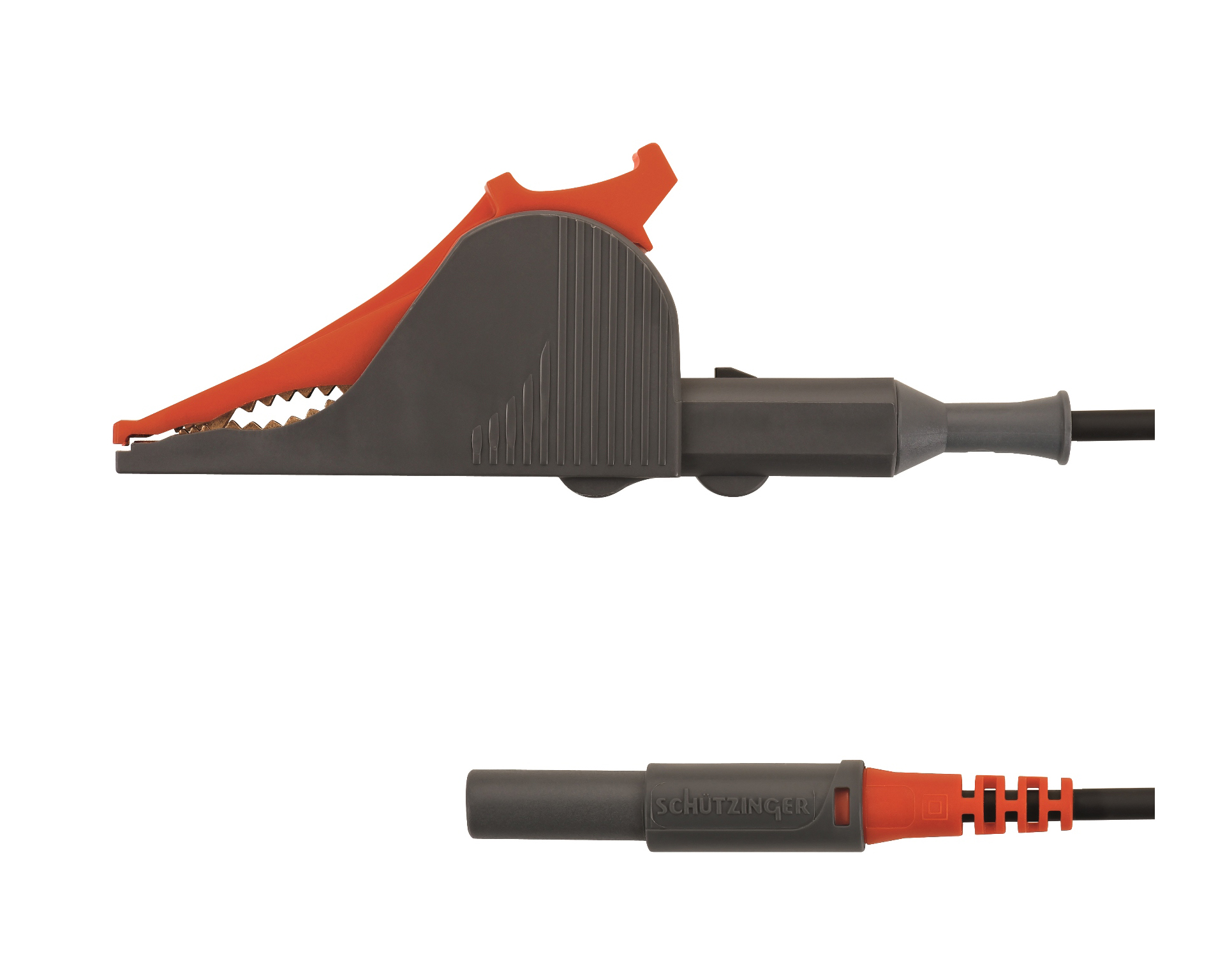 - 1 Koaxial-Sicherheits-Federkorbstecker, konfektioniert an Koaxialkabel und Sicherheits-Kelvinklemme