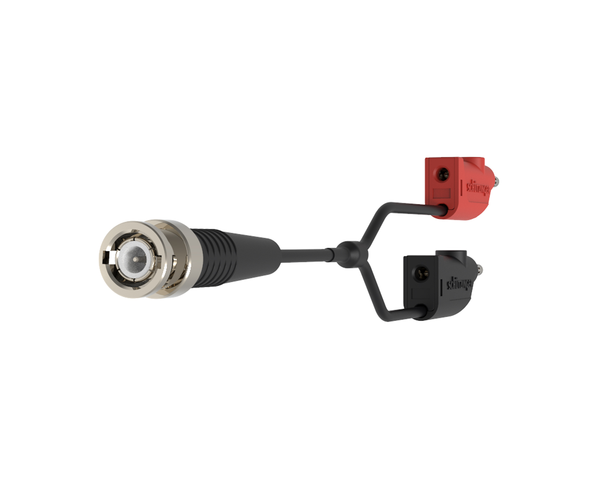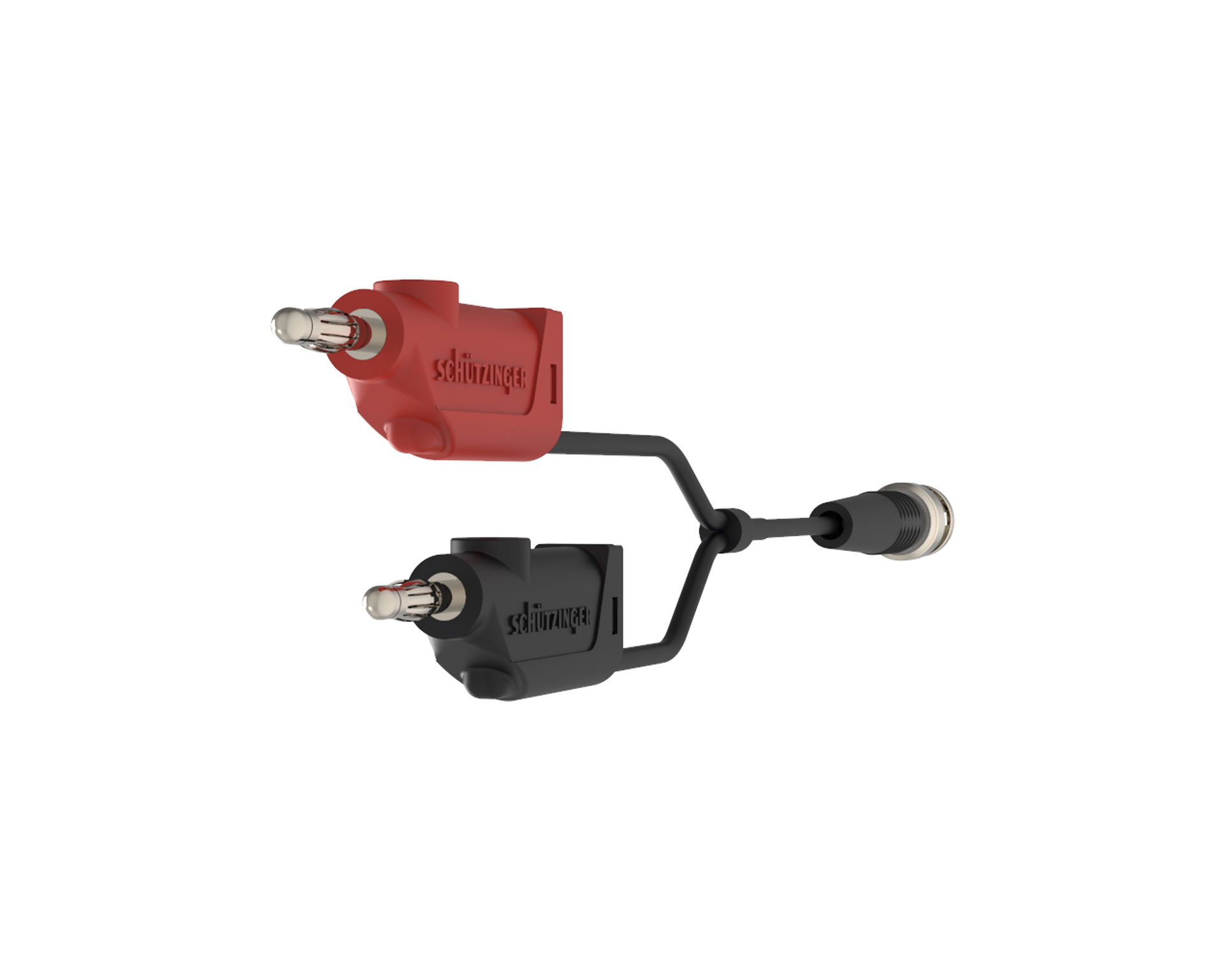 - 2. Seite: 2x Ø 4mm Federkorbstecker mit axialer Steck-und Quersteckbuchse, konfektioniert an hochflexibler, doppelt-isolierter PVC-Leitung 1 mm²