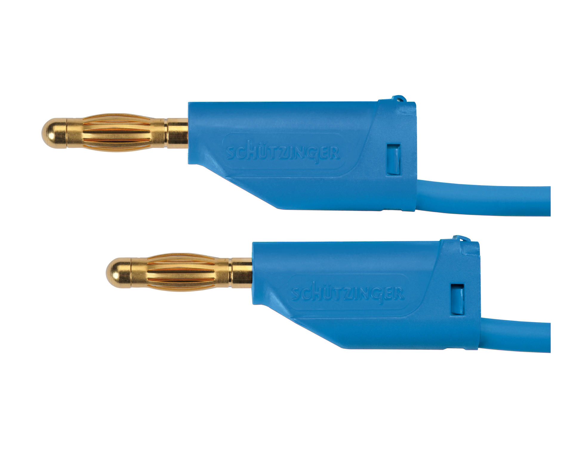 - 2 Federkorbstecker mit axialer Steckbuchse, konfektioniert an hochflexibler, doppelt-isolierter PVC- Leitung 1 mm²