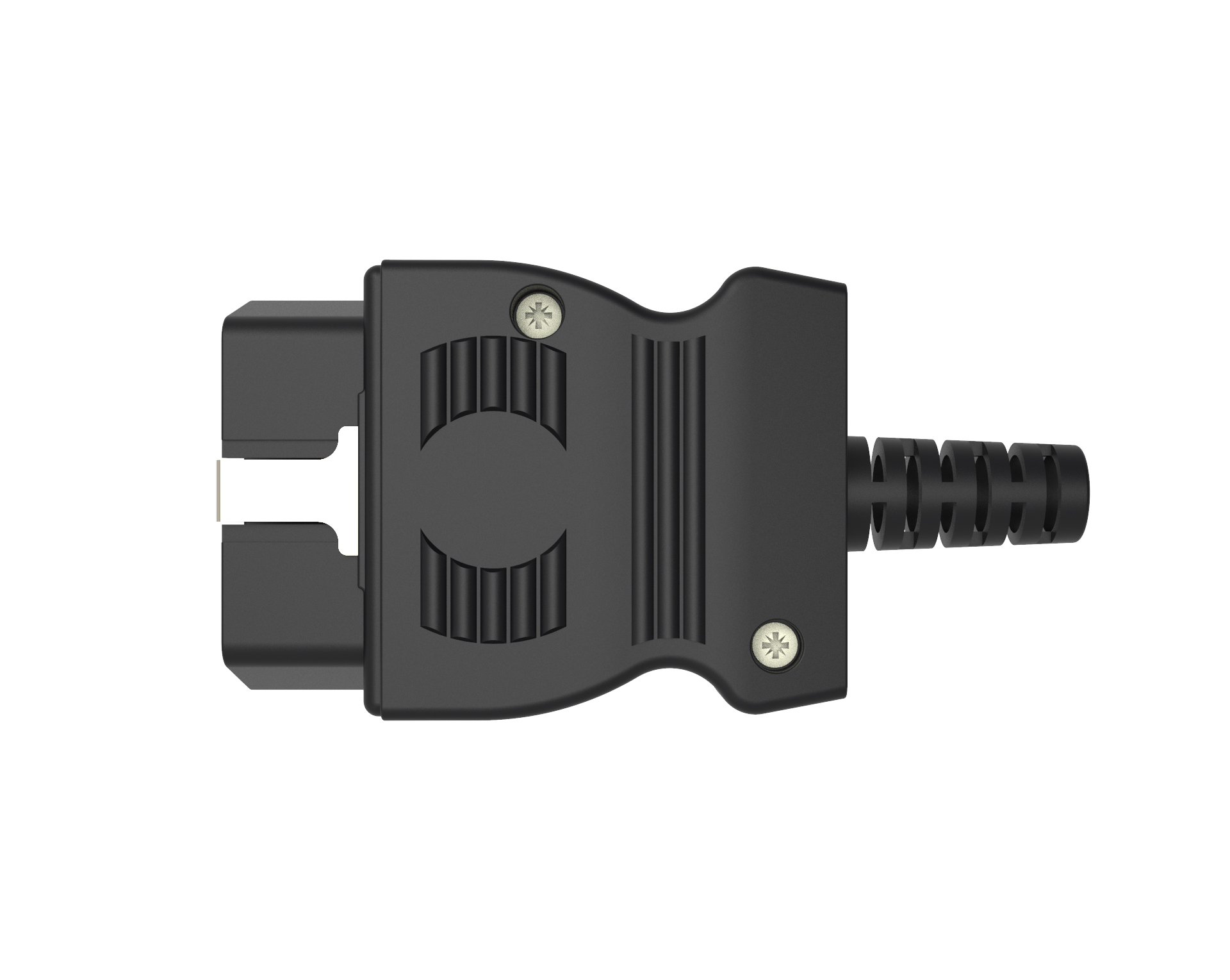 - Set mit Gehäuse aus PA6.6, OBD-II-Stecker und Knickschutztülle für Kabel bis Ø 11 mm