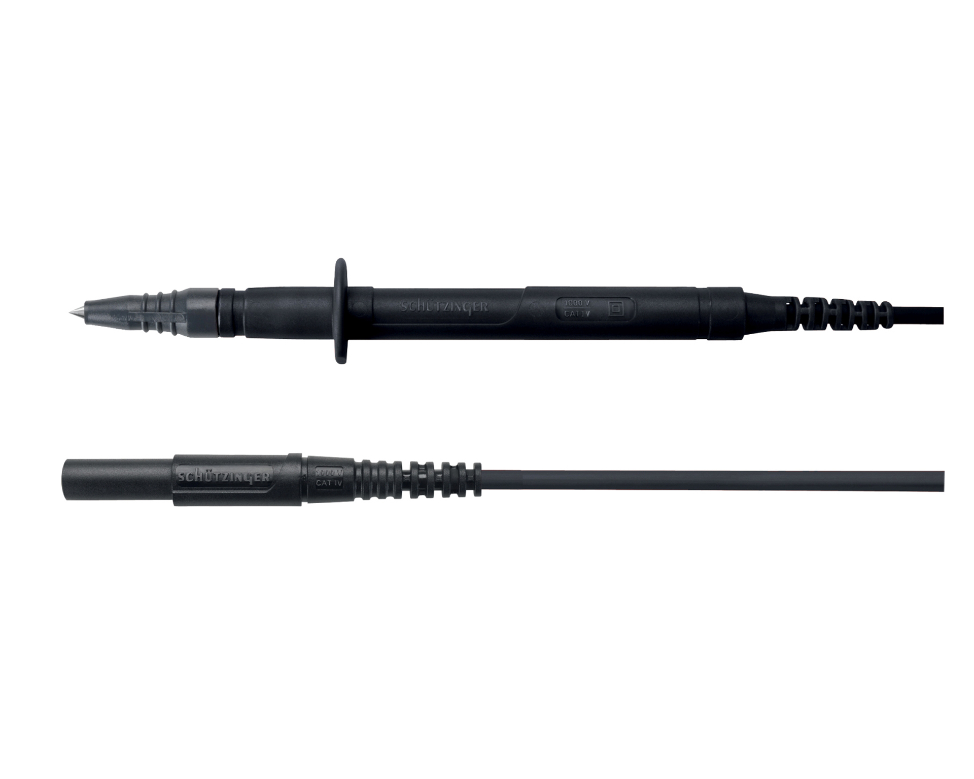 - 1 Sicherheits-Prüfspitze und 1 Sicherheits Federkorbstecker konfektioniert an hochflexibler, doppelt-isolierter PVC-Leitung 1 mm²